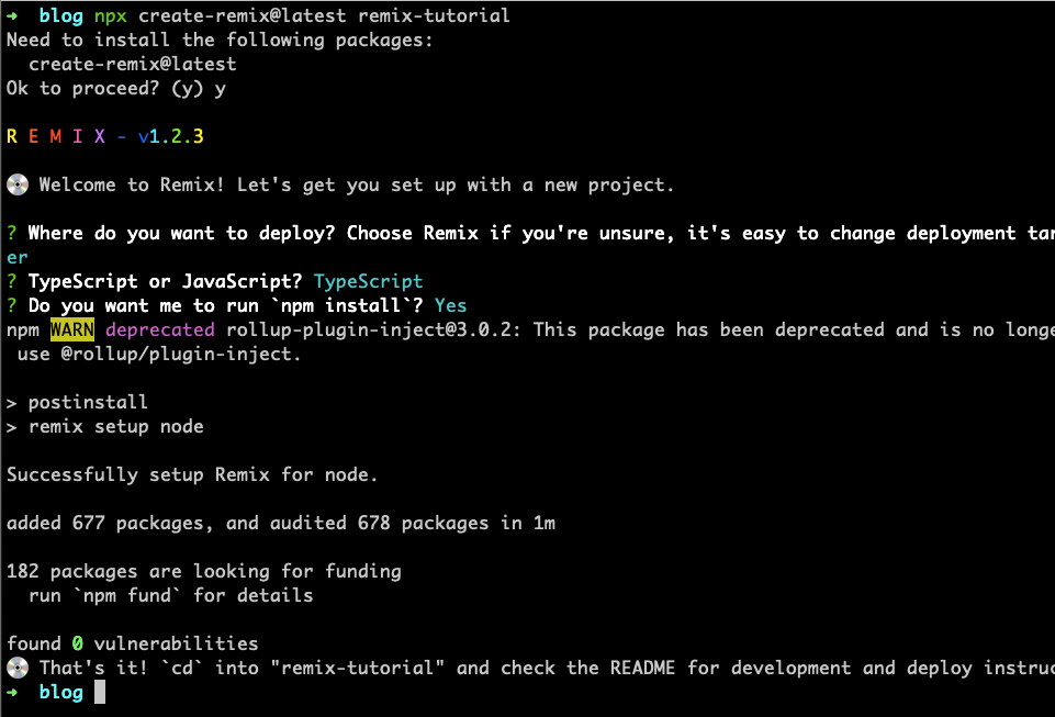npx create-remix@latest remix-tutorial