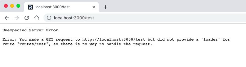 바로 리믹스가 test.tsx 파일의 존재를 보고 test라는 라우팅을 만들었는데, 실제 test.tsx 파일 안에는 브라우저에 보여줄 수 있는 DOM이 아무것도 없어서 그런 겁니다.