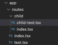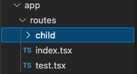 우리의 예제에서는 routes 폴더 밑에 child 폴더가 있는 경우니까 바로 routes 폴더 밑에 child.tsx 파일을 만드는 경우입니다.