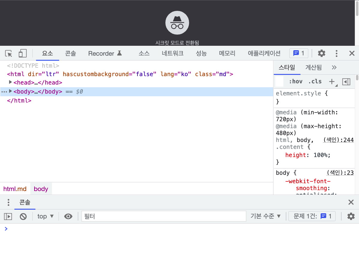 크롬 devtools인데요.