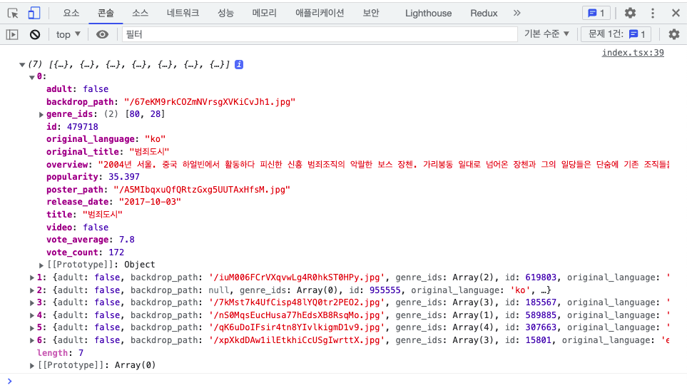TMDB API는 API_KEY만 있으면 간단하게 fetch를 이용해서 JSON 형태의 자료를 받을 수 있습니다.