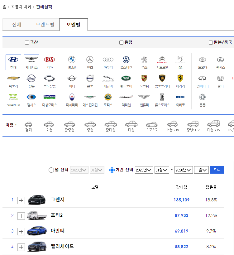 2020년 12월 판매실적 | 자동차 백과 : 다나와 자동차