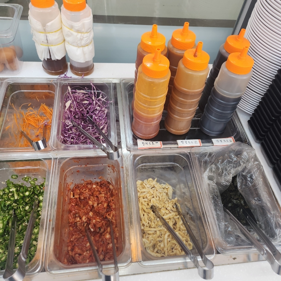 다양한 야채와함께 소스도 여러가지라서 자신의 입맛대로 골라 먹을수 있습니다.