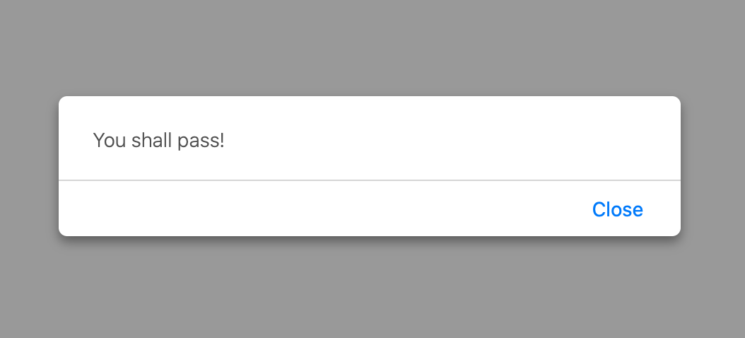 이 코드를 실행하면 "You should not pass!"라는 텍스트가 포함 된 경고가 표시됩니다.