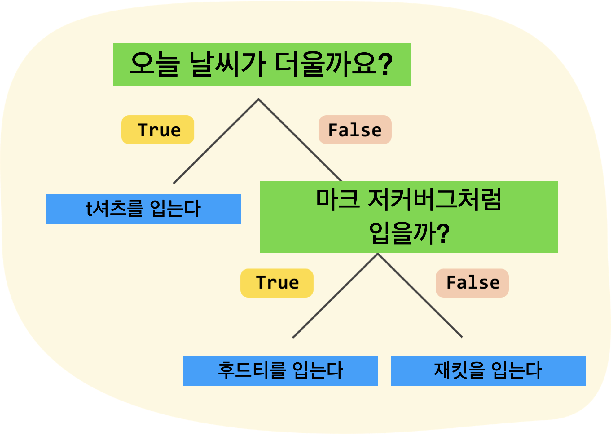 결정을 내리는 각 단계에서 참 또는 거짓으로 대답 할 수 있는 질문을 스스로에게 물어 봅니다.