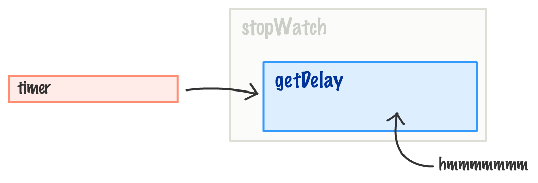 getDelay 함수는 외부 stopWatch 함수의 컨텍스트에 있는 startTime 변수에 의존합니다.